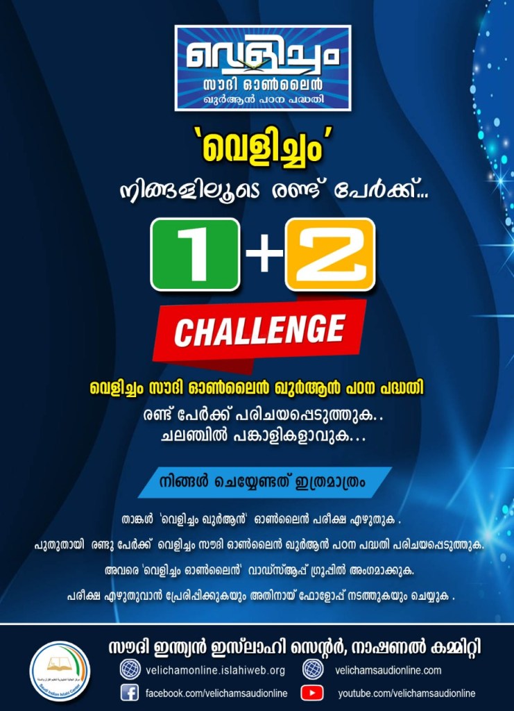 👉 വെളിച്ചം സൗദി ഓൺലൈൻ നാലാംഘട്ടം – ജൂൺ 17 മുതൽ ആരംഭിച്ചിരിക്കുന്നു.