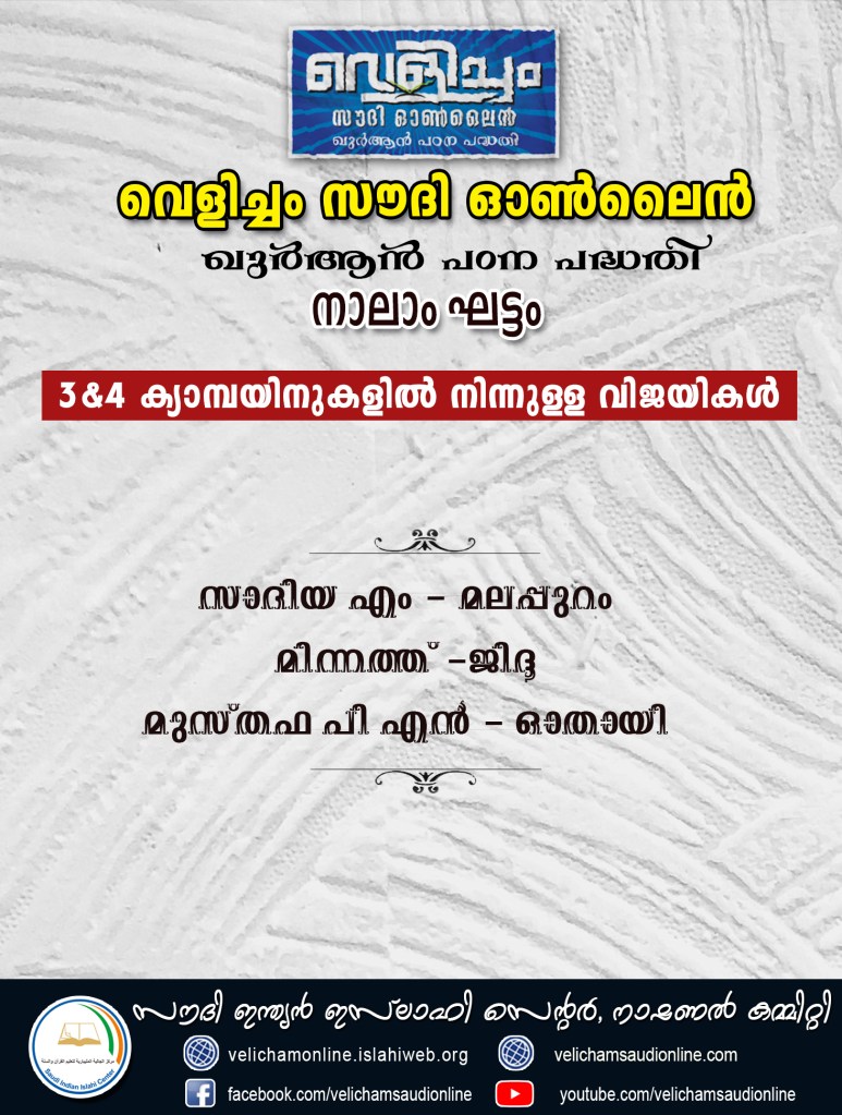 വിജയികൾക്ക് വെളിച്ചം സൗദി ഓൺലൈൻ ടീമിന്റെ അഭിനന്ദനങ്ങൾ.