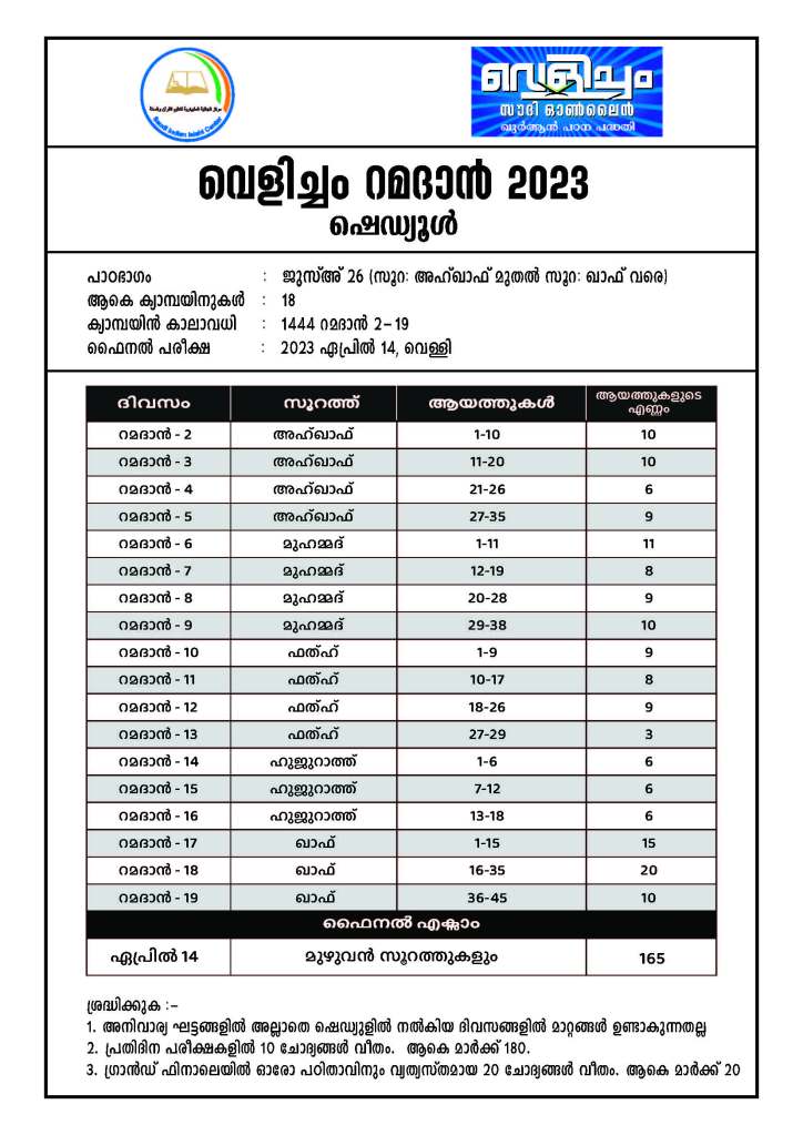 വെളിച്ചം റമദാൻ 2023 – ഷെഡ്യൂൾ