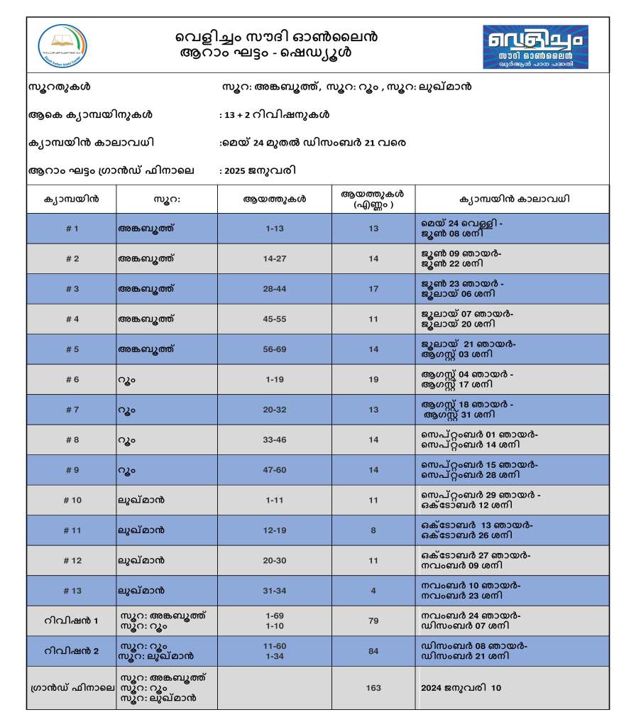 വെളിച്ചം സൗദി ഓൺലൈൻ ആറാം ഘട്ടം – ഷെഡ്യൂൾ -PDF