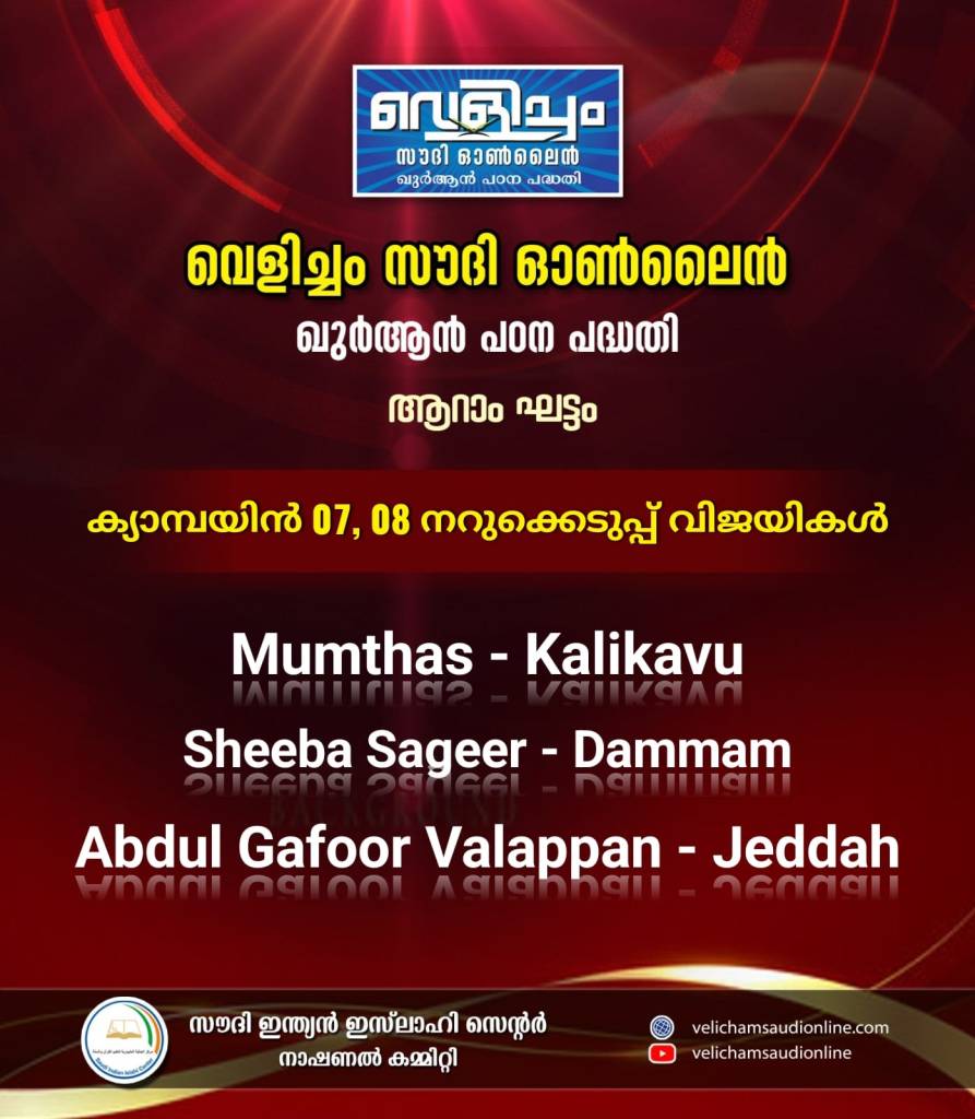 വിജയികൾക്ക് വെളിച്ചം സൗദി ഓൺലൈൻ ടീമിന്റെ അഭിനന്ദനങ്ങൾ.