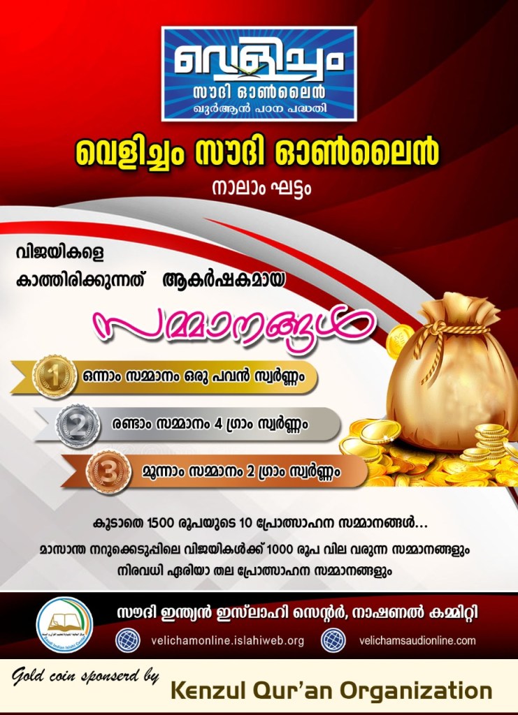 👉 വെളിച്ചം സൗദി ഓൺലൈൻ നാലാംഘട്ടം – ക്യാമ്പയിനുകൾ ആരംഭിച്ചു..
