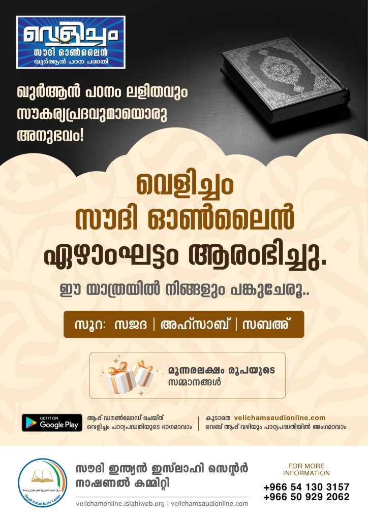 👉 വെളിച്ചം സൗദി ഓൺലൈൻ ഏഴാംഘട്ടം ആരംഭിച്ചു