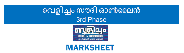 📝 വെളിച്ചം സൗദി ഓൺലൈൻ മൂന്നാംഘട്ടം മാർക്കുകൾ 📝