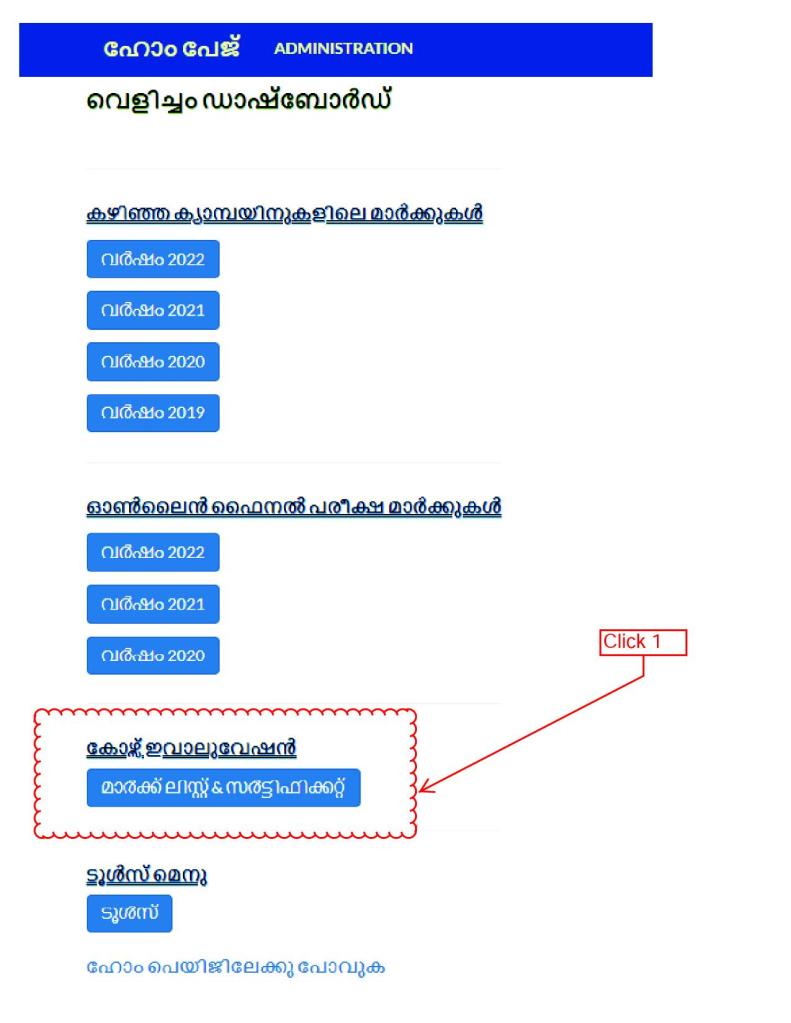 - മൂന്നാമതായി കാണുന്ന കോഴ്സ് ഇവാലുവേഷൻ എന്നതിൽ ക്ലിക് ചെയ്യുക.