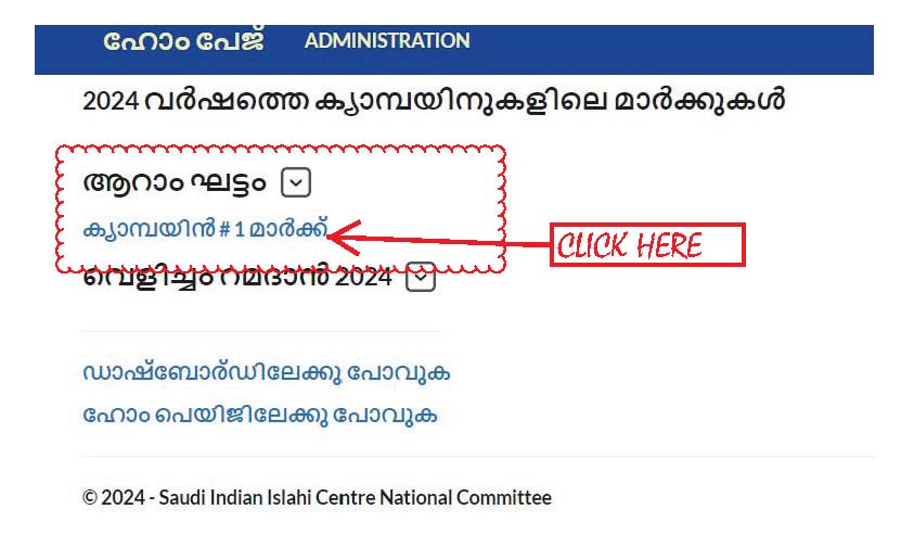 1- നിങ്ങളുടെ ഡാഷ്ബോർഡിലെ കഴിഞ്ഞ ക്യാമ്പയിനുകളിലെ മാർക്കുകൾ എന്ന ഹെഡറിന് താഴെയുള്ള വർഷം 2024 ഫോൾഡറിൽ ക്ലിക്ക് ചെയ്യുക